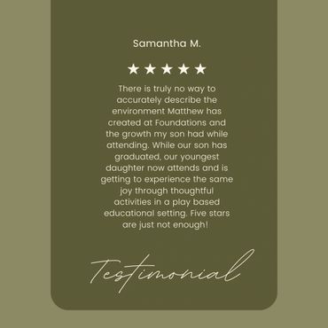 At Foundations, children have the autonomy to guide their own play, with teachers serving as facilitators - not directors - of learning. Literacy, mathematics, and the sciences are woven throughout their daily experiences. Children learn the power of their words and feelings, find strength in cooperation, and discover the value of self assurance as they develop trust in themselves and their environment.