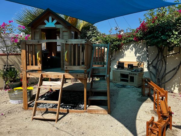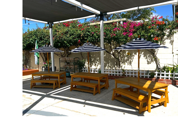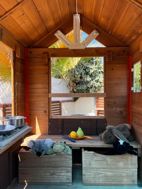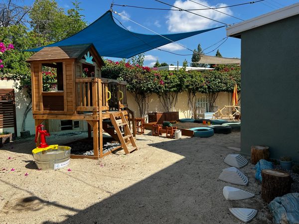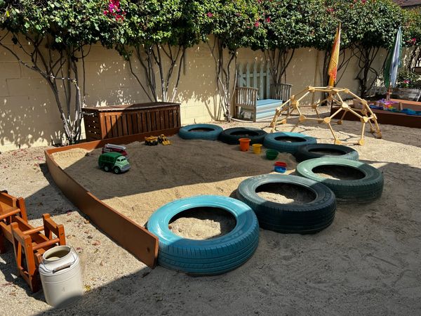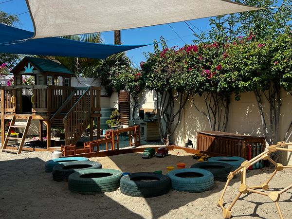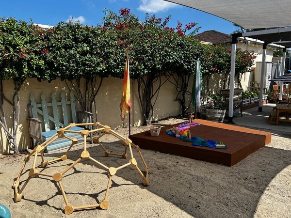 During outside time, there are even more opportunities to stretch their muscles and explore their physical world. Whether it's riding bikes around a painted track, or unearthing treasures out of the sandbox, the outdoor play house, mud kitchen, pebble river, and climbing dome offer ample opportunity to get messy and learn!